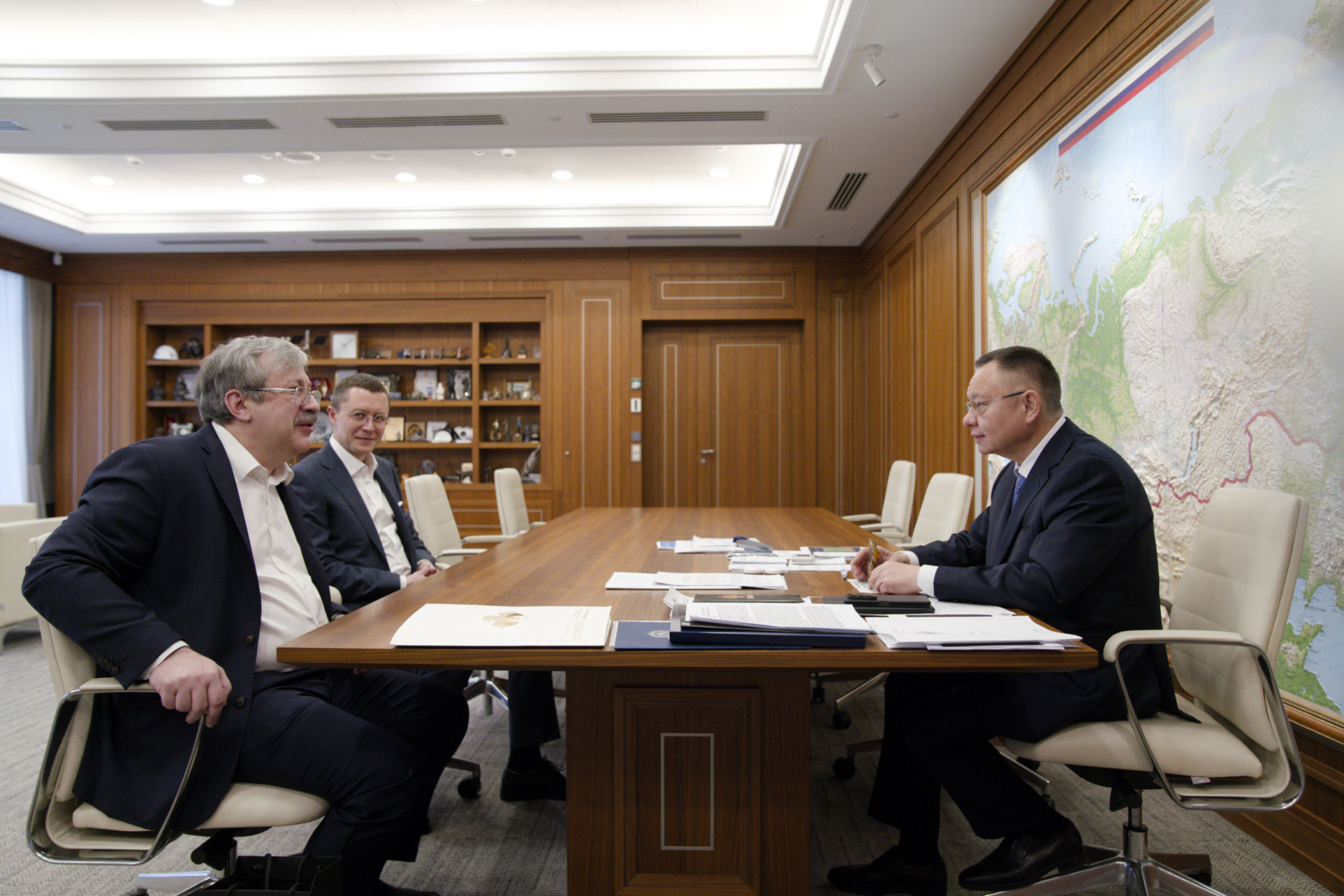 Министр строительства и жилищно-коммунального хозяйства Российской Федерации Ирек Файзуллин провел совещание с экспертами в области экономики и финансов. В нем приняли участие профессор Высшей школы экономики Андрей Цариковский и председатель Наблюдательного совета банка «УРАЛСИБ» Евгений Коган.